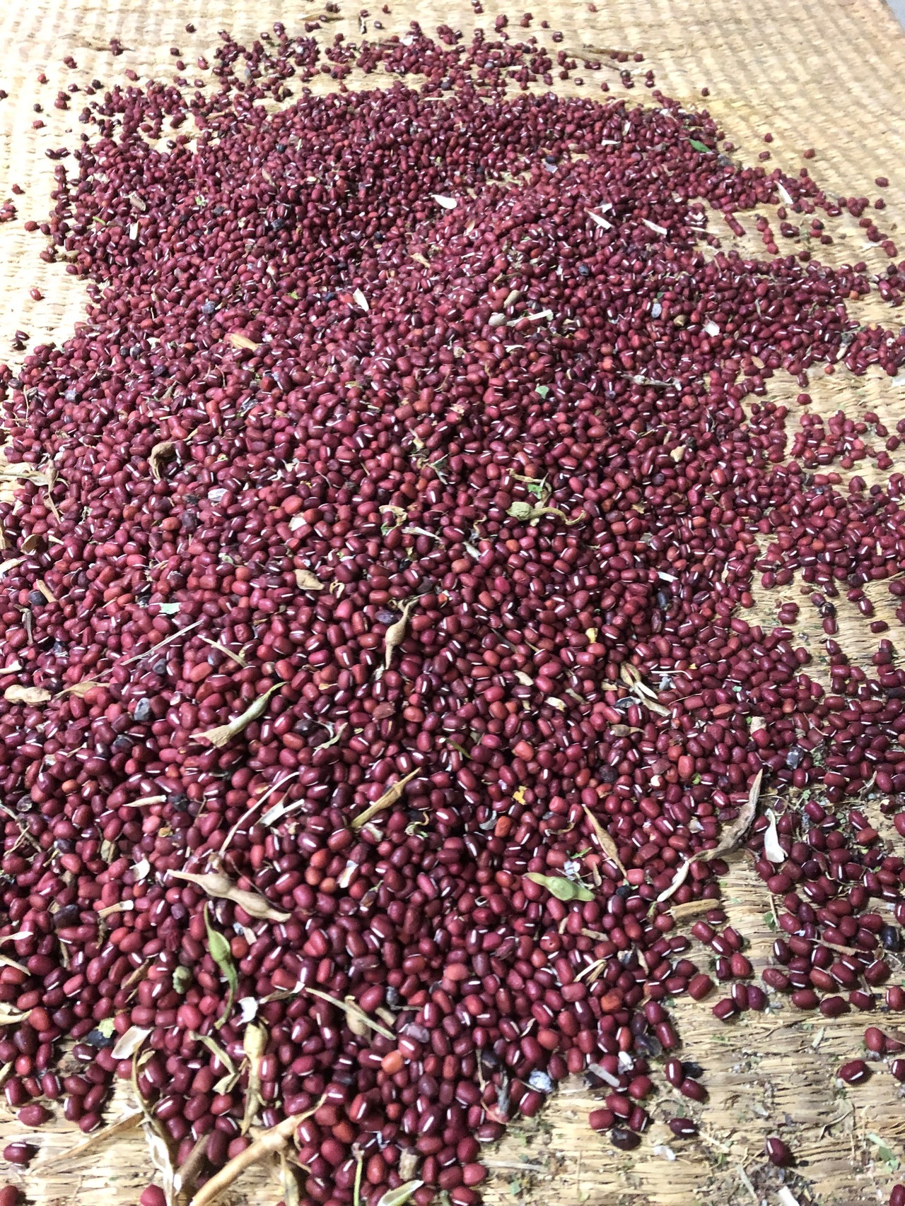 小豆は、7月末に種まきし、10月下旬に収穫して、天日干し、自然乾燥させています。